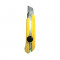 Предназначен для резки бумаги, картона, ткани и пластика. Пластиковый корпус. Металлическая направляющая. Оснащен отламывающимся сегментированным лезвием.
